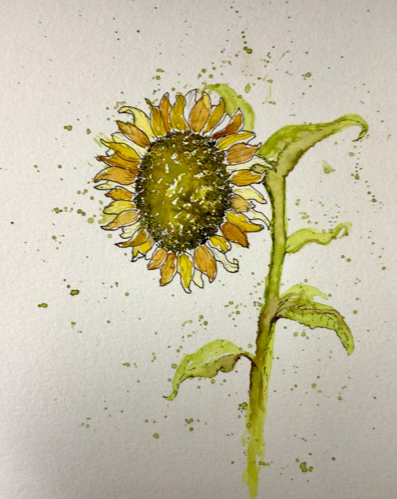 Note: the image at the top is one of my own loose sketches from years ago. The sunflower is a copy I painted following a wonderful book. The original sunflower appears as a lesson in Ink and Wash Florals, by Camilla Damsbo Brix, Page St. Publishing, 2022.